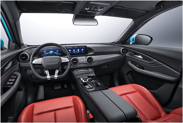 内饰方面,东风风行T5 EVO硬核灰延续了黑红搭配的运动色调,液晶仪表盘与中控屏幕双10.25英寸的连屏设计组合,在炫酷科技的同时兼具豪华品牌的设计感,王者权杖电子档杆搭配超感NAPPA真皮座椅以及真皮方向盘,赋予年轻人至尊舒享的驾乘感受。