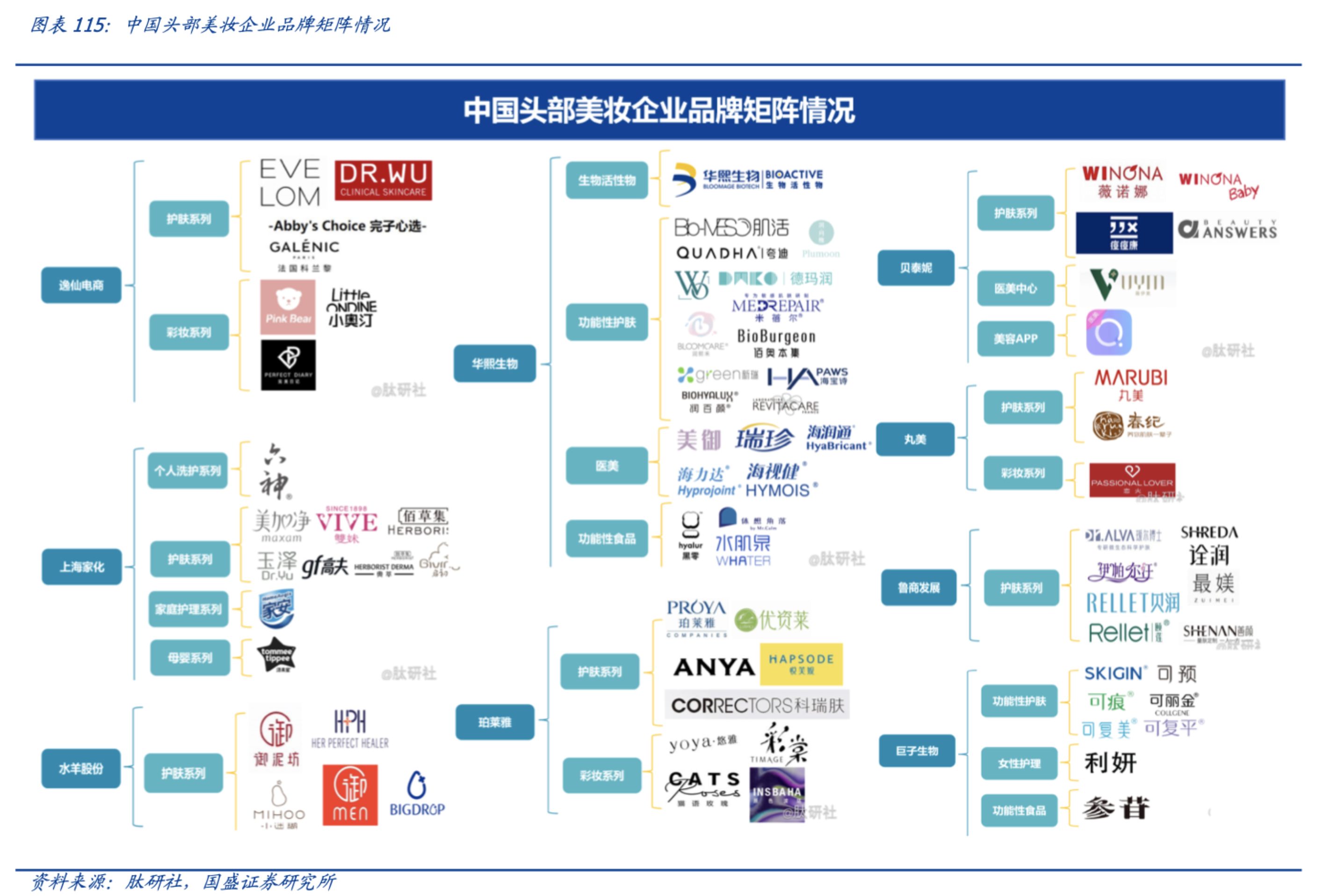 根据国盛证券最新梳理,目前头部国货美妆企业大多处于从单品牌走向多品牌的摸索阶段,在利用自身核心资源壮大主品牌的同时,完备产研体系及中后台运营架构以赋能多品牌。