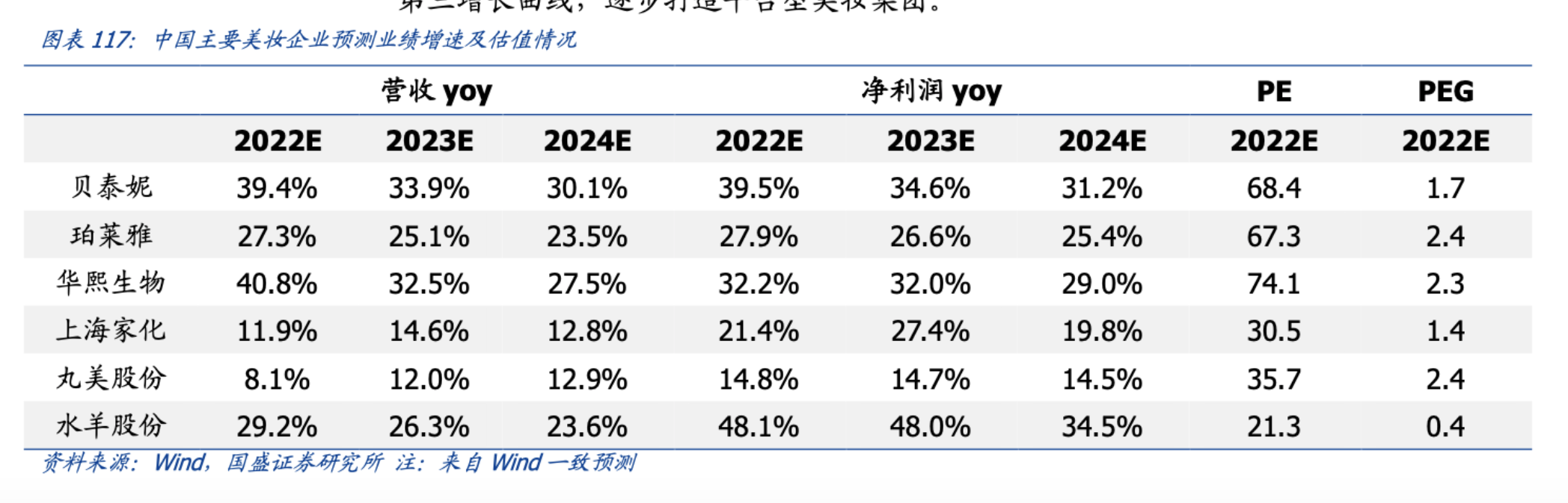 业绩方面,贝泰妮、珀莱雅和华熙生物过去3年营收复合增长率分别为48%/25%/58%、净利润复合增长率分别为49%/26%/23%。根据Wind一致预测,未来3年仍有望保持高增。在资金、品牌资产等资源的加持下,优质国货龙头业绩兼具确定性与高成长性,后期有望迎来戴维斯双击。