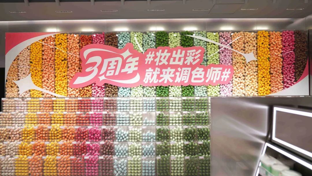 据门店工作人员介绍,此次多家彩妆品牌齐聚为调色师三周年庆活动,而据调色师官方透露,作为在全国核心商圈已完成多点布局的美妆集合品牌,此次借势十一黄金周开启三周年庆效果显著。